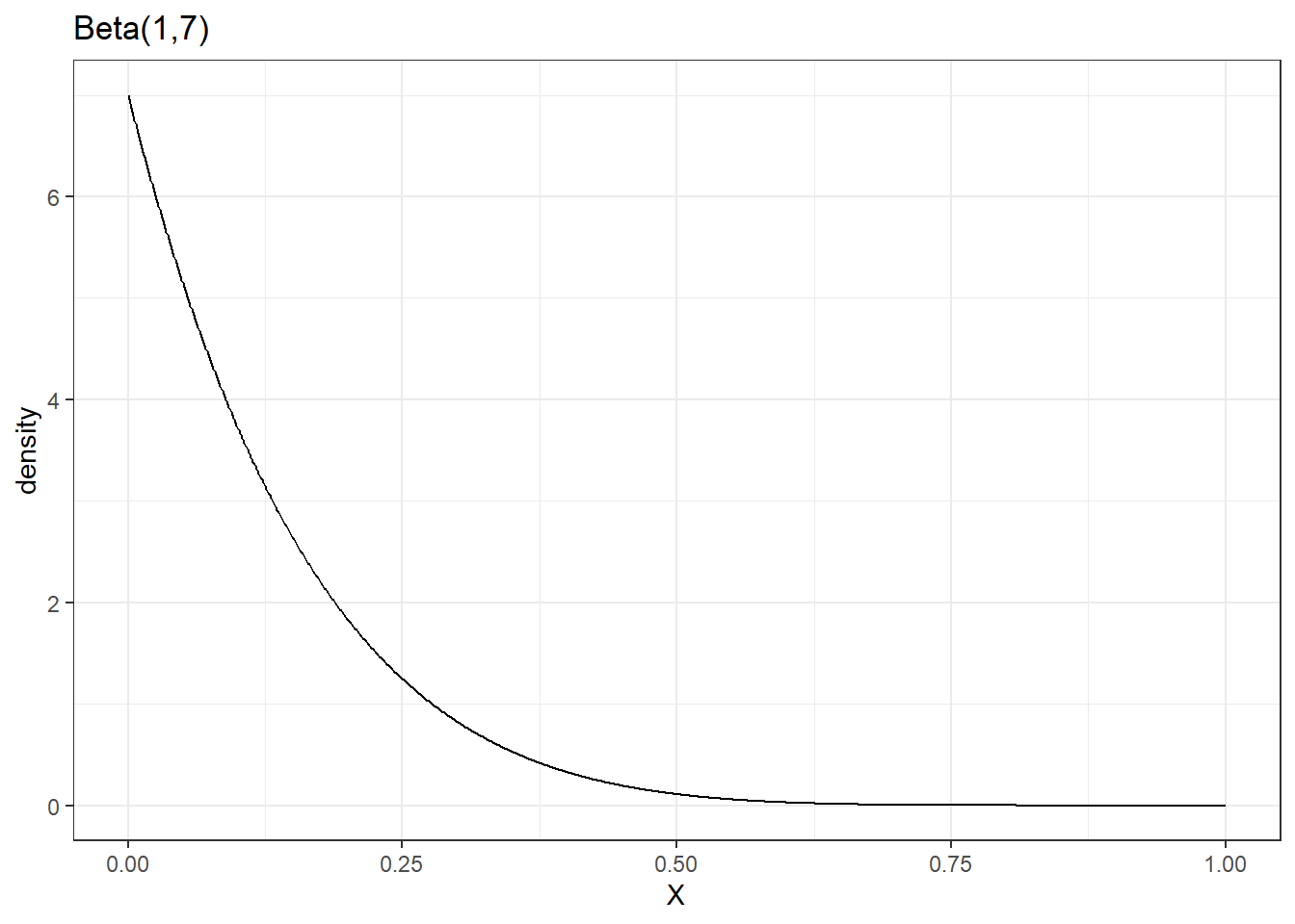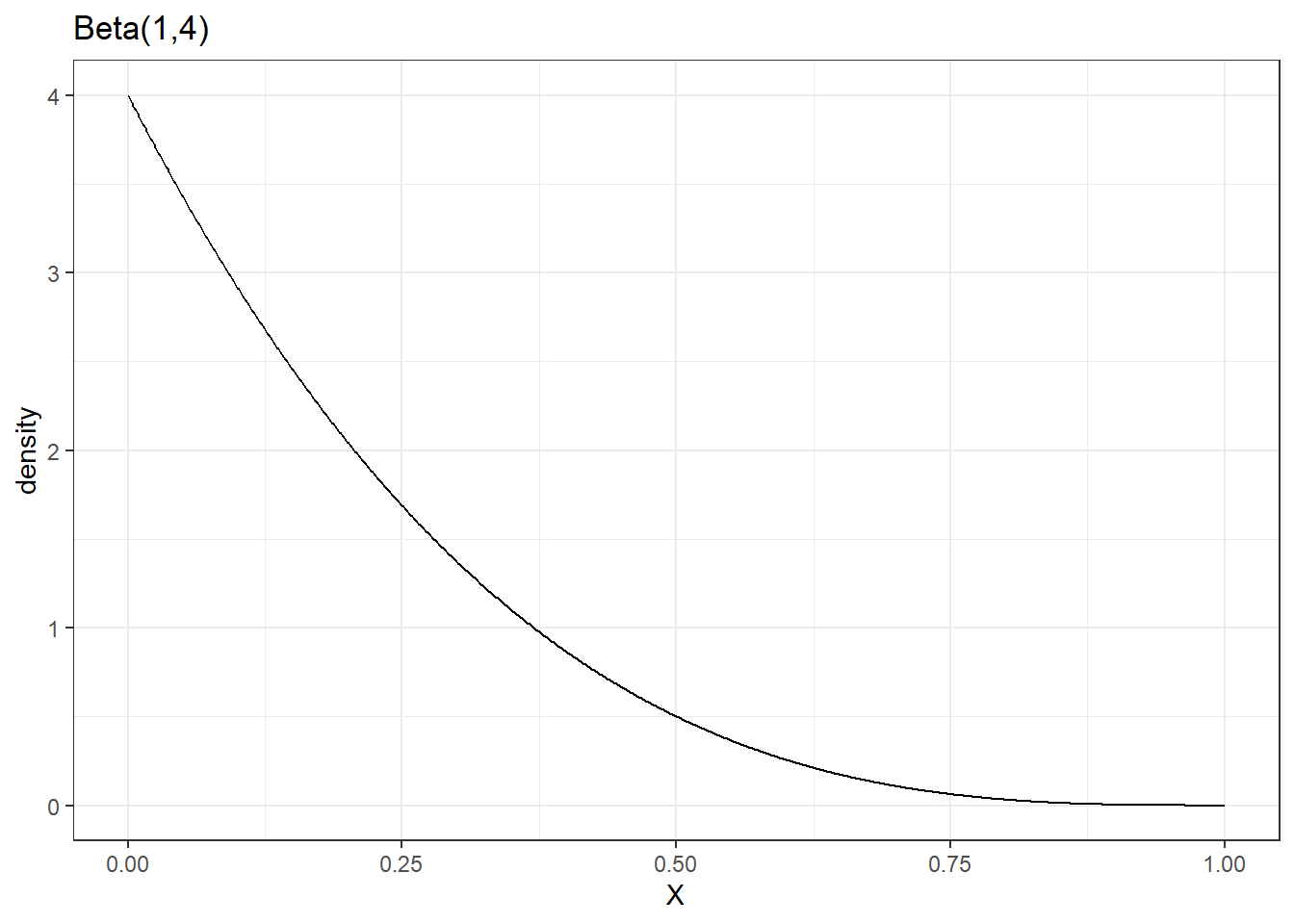 labs(x='X', y='density', title=paste0('Beta(',shape1,',',shape2,')'))+