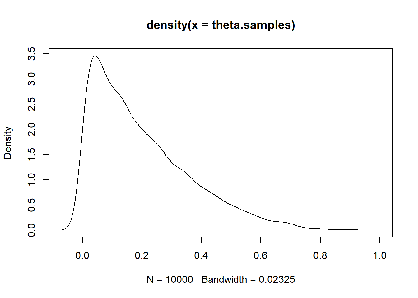 theta.samples <- rbeta(num.samples, shape1 = 1, shape2 = 4)
